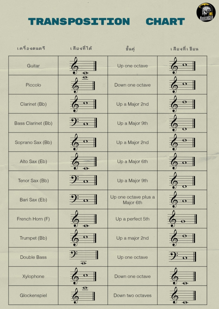 26/01/2022เครื่องทรานสโพสคืออะไร เครื่องทรานสโพสคือเครื่องดนตรีที่เล่นเสียงอีกคีย์หนึง และบันทึกโน้ตอีกคีย์หนึง หรือพูดง่ายๆว่าคีย์ธรรมชาติของเครื่องนั้นๆไม่ได้อยู่บน ซีเมเจอร์ ยกตัวอย่างเช่น คลาริเน็ตแบบ Bb ก็คือปี่คลาริเน็ตที่เมื่อไล่สเกลซีเมเจอร์ตามในหนังสือ เสียงของมันกลับกลายเป็นสเกล Bb major แทน ดังนั้นจะเห็นได้ว่า เสียงของคลาริเน็ตหากจะให้ได้เสียง C major ก็ต้องเขียนในคีย์ D major…