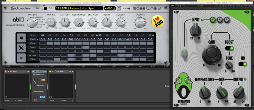 ‘Da Funk’ เป็นเพลงฮิตแรกของ Daft Punk วางจำหน่ายในปี 1995 และรวมอยู่ในอัลบั้ม Homework เปิดตัวในปี 1997 ไม่ต้องสงสัยเลยว่าเป็นหนึ่งในเพลงเฮาส์คลาสสิกในยุค 90 แม้ว่าจะมี BPM ต่ำกว่า 111 ก็ตามไลน์เบสแบบโน้ตเดียวของแทร็กเป็นต้นแบบในแนวมินิมอลในขณะที่ริฟฟ์ TB-303 ที่มีดิสตอร์ชั่นตัดกันซึ่งมาในช่วงครึ่งหลัง ของแทร็กเป็นหนึ่งใน 303 riffs ที่มีชื่อเสียงที่สุดตลอดกาลคีย์ของเพลงคือ G minor และเบสกำลังเล่นโน้ต G ต่ำพร้อมกระเดื่อง จนเกือบจะเปลี่ยนไลน์เป็นเลเยอร์เดียวกับกระเดื่องเลย สิ่งนี้ใช้ได้ผลในบริบทของการเรียบเรียงเนื่องจากริฟฟ์ลีดที่อยู่ด้านบนให้รูปแบบที่คล้ายกับเบสไลน์ที่ใช้งานอยู่ทั่วไปมากกว่าTB-303 riff ที่เข้ามาในนาที 2:26 แต่ยังไม่มีเสียงต่ำดังนั้นจึงไม่สามารถจัดเป็นเบสไลน์ได้อย่างแน่นอน แต่อย่างไรก็ตามเราต้องการดู นี่คือดนตรีที่เราสร้างขึ้นมาใหม่ด้วยสี่บาร์จาก “Da Funk” ก่อนอื่นด้วยกลองจากนั้นต่อด้วยท่อนเบสในโซโล่:พาท TB-303 ประกอบด้วยรูทโน้ต G, minor 3rd A# , minor 7th F, perfect 4th C และ minor 6th D#, perfect 5th Dและโน้ตตัวที่สองของสเกล A จะถูกละไว้ ลักษณะของ riff ขึ้นอยู่กับ Roland TB-303 และมีฟีเจอร์เช่น Gate, Down, Up, Accent และ Slide เราใช้ปลั๊กอิน Bass Line 3 ของ Audiorealism ในการสร้างดนตรีขึ้นใหม่ตามด้วย Live’s Redux bit crusher และ Waves ‘MDMX Screamer เพื่อให้ได้เสียงดิสตอร์ชั่นนั้น อีกแง่มุมหนึ่งของบรรทัดนี้ที่โดดเด่นคือความจริงที่ว่าโน้ตที่ปิดเสียงเพียงโน้ตเดียวคือโน้ตตัวที่ 16 ตัวแรกและสร้างการพักผ่อนที่มีประสิทธิภาพมากโดยให้เพียงพอสำหรับผู้ฟังทุกครั้งที่วนซ้ำ