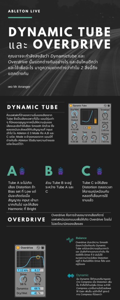 Ableton ความแตกต่างระหว่าง Dynamic Tube และ Overdrive